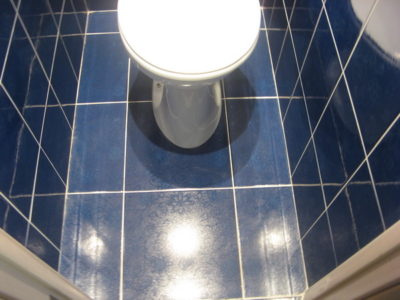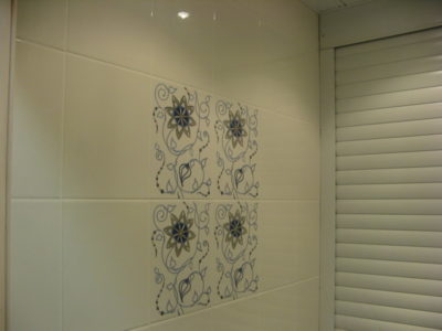 Наша компания выполнила ремонт туалета на ул. Лапина. Для декорирования поверхностей мы выбрали белый и синий кафель, а также светлые пластиковые панели для потолка. Коммуникации скрыли за защитными роллетами с возможностью доступа сантехников к инженерным сетям. На боковых стенах выложен узор из кафеля с нанесенным рисунком. Мы полностью заменили дверной блок и установили унитаз современной модели. Для освещения на потолке смонтированы точечные светильники. Общий бюджет ремонта составил 34000 руб. Стоимость черновых материалов — 10000 руб.